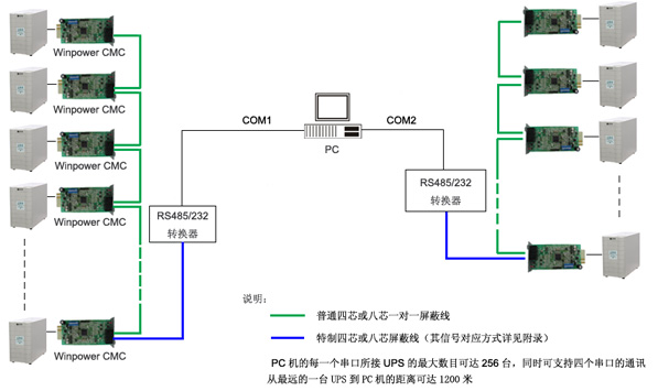 台积电的生产工厂分布在大陆多个城市,采用了500多套UPS。而实现UPS集中管理成为保障负载安全运行的重要因素之一,山特提供的UPS品种多样,共分为5大系列20多种规格,这对UPS的集中监控和远程管理提出了更高的要求,山特针对这一难题提供一整套完善、可靠、有效的远程监控管理方案,利用山特UPS的RS232、RS485接口及 AS400、Winpower、Webpower接口卡,配合丰富多样的管理软件,可以轻松实现本地单台、本地多台、异地单台、异地多台、集群集中管理,如图2所示。使得各地UPS的运行状况更容易掌控,如图3、图4所示。